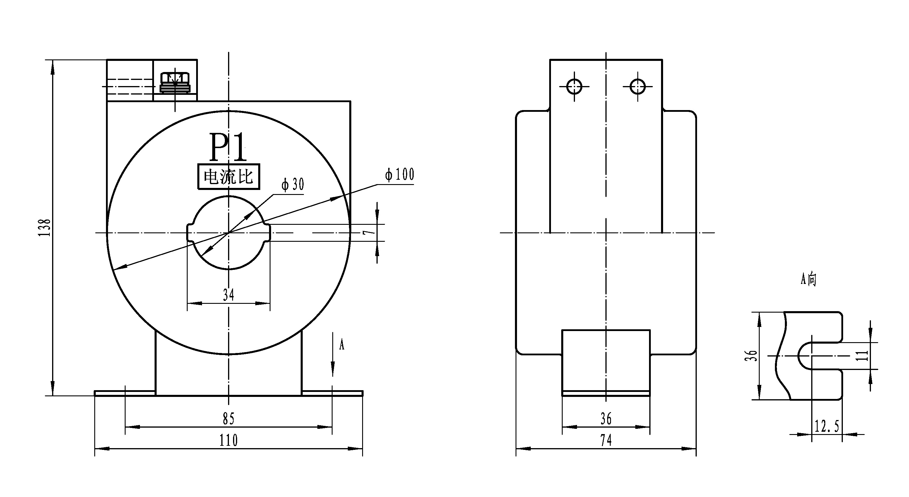●結(jié)構(gòu):電流互感器的鐵心為環(huán)形和矩形兩種。二次繞組沿鐵芯周均分布,采用環(huán)氧樹脂澆注為電流互感器外殼,電流互感器的設(shè)計(jì)為窗孔,供一次母排或電纜穿過。P1標(biāo)記為一次進(jìn)線端;P2標(biāo)記為一次出線端;二次電流由S1流出端;S2為流入端,即為減極性。