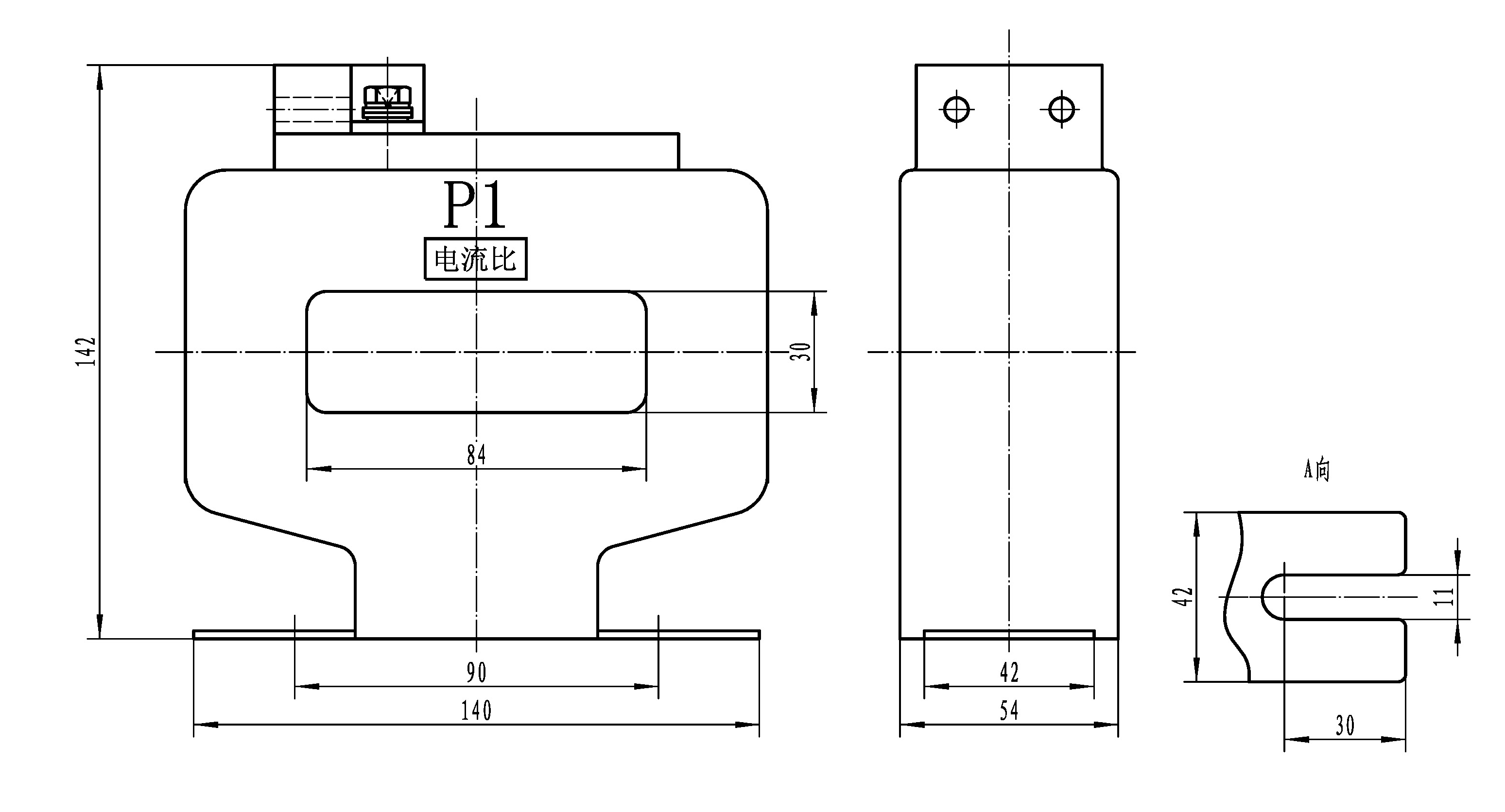●結(jié)構(gòu):電流互感器的鐵心為環(huán)形和矩形兩種。二次繞組沿鐵芯周均分布,采用環(huán)氧樹脂澆注為電流互感器外殼,電流互感器的設(shè)計(jì)為窗孔,供一次母排或電纜穿過。P1標(biāo)記為一次進(jìn)線端;P2標(biāo)記為一次出線端;二次電流由S1流出端;S2為流入端,即為減極性。