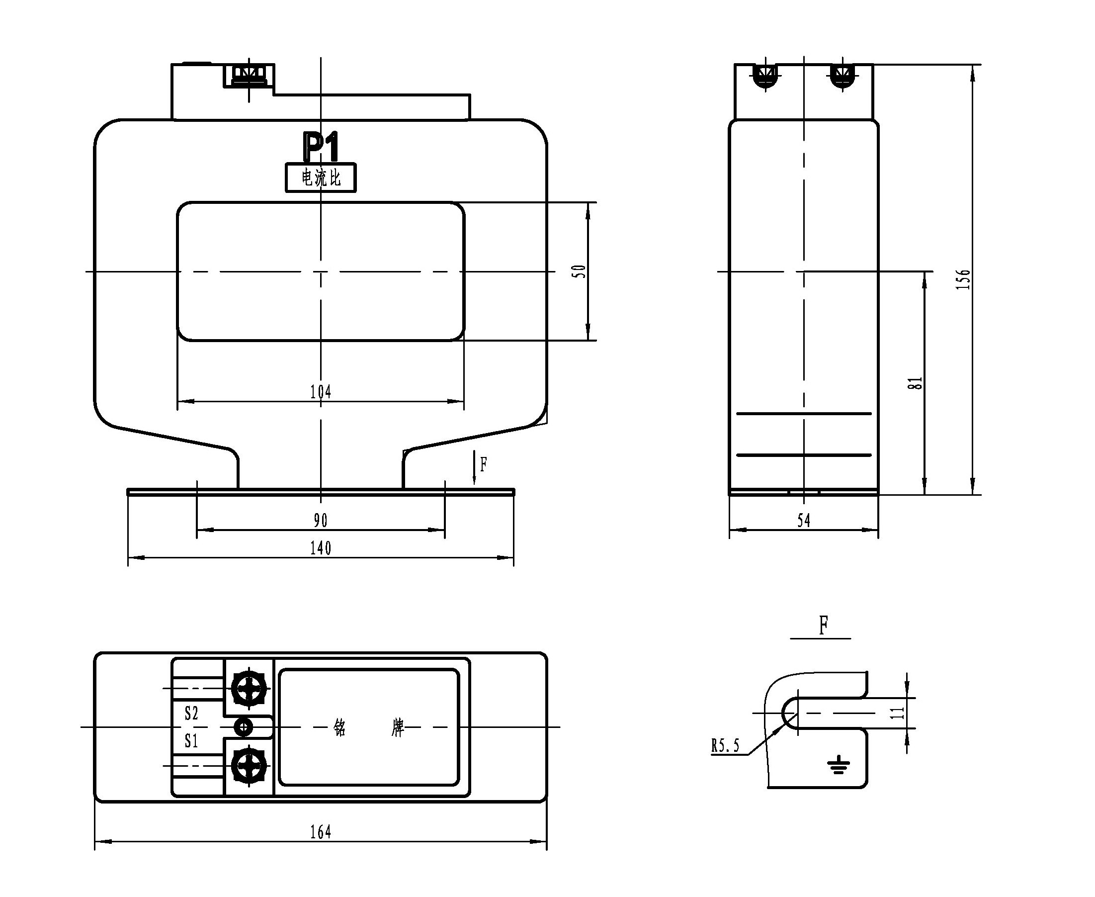 ●結(jié)構(gòu):電流互感器的鐵心為環(huán)形和矩形兩種。二次繞組沿鐵芯周均分布,采用環(huán)氧樹脂澆注為電流互感器外殼,電流互感器的設(shè)計(jì)為窗孔,供一次母排或電纜穿過。P1標(biāo)記為一次進(jìn)線端;P2標(biāo)記為一次出線端;二次電流由S1流出端;S2為流入端,即為減極性。