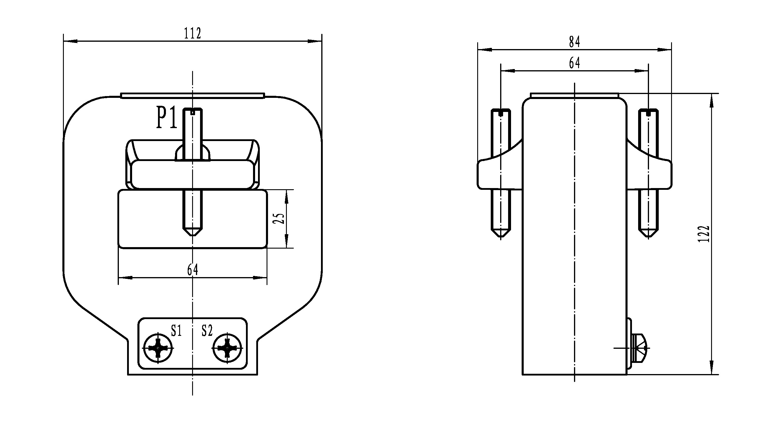 ●結(jié)構(gòu):電流互感器的鐵心為環(huán)形和矩形兩種。二次繞組沿鐵芯周均分布,采用環(huán)氧樹脂澆注為電流互感器外殼,電流互感器的設(shè)計(jì)為窗孔,供一次母排或電纜穿過(guò)。P1標(biāo)記為一次進(jìn)線端;P2標(biāo)記為一次出線端;二次電流由S1流出端;S2為流入端,即為減極性。